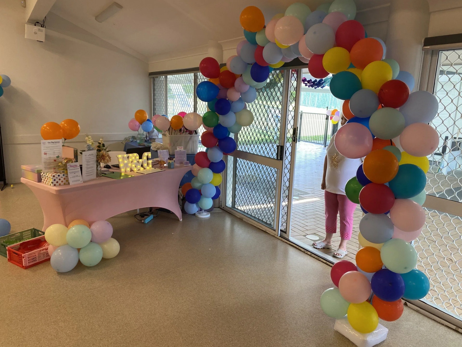 Setting up our colouring station at our Giggle & Greet 2025
